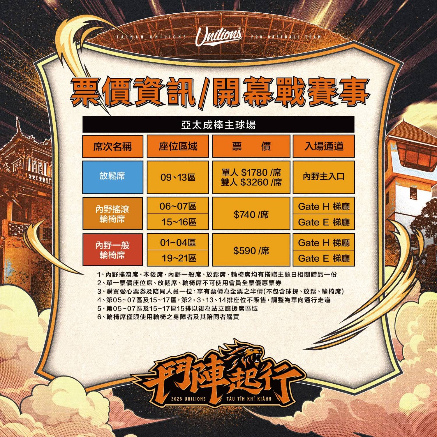 ▍2026統一獅上半季賽事-售票時程 ▍