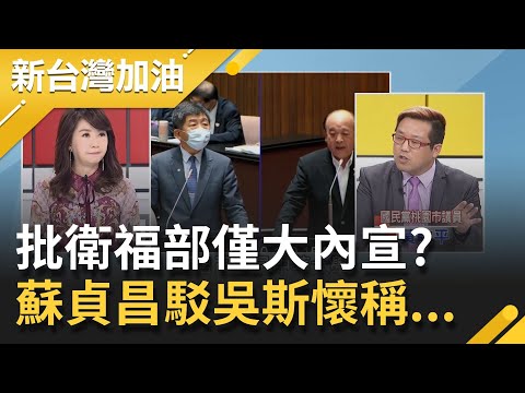 擊,但一旁的行政院長蘇貞昌反駁「 把台灣防疫做到世界第一的衛福部被吳斯懷講成這