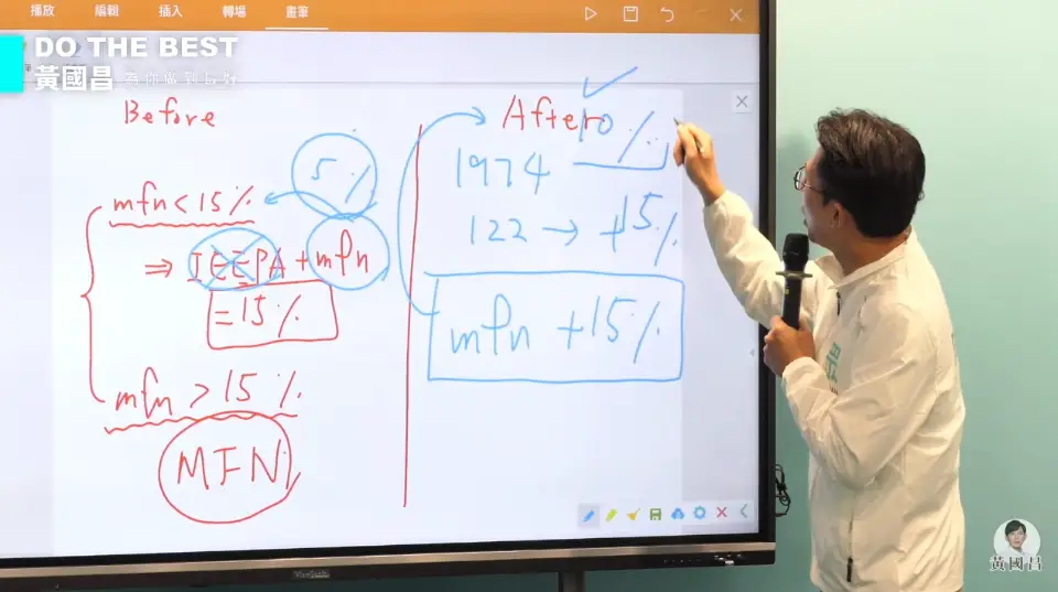 對美國已做的承諾也難交代,若7月24日上演只有台灣15%的大笑話,整個不用選了。