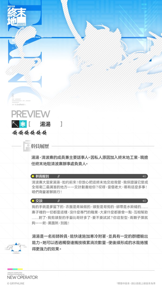 [終末地] 湯湯 - 幹員演示 - C_Chat 板