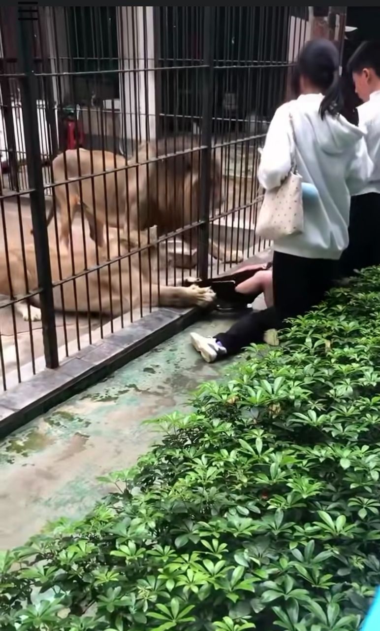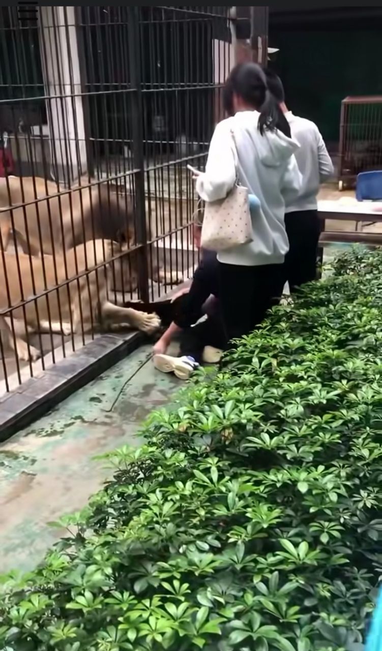 中國遊客疑似違規跨越護欄,導致獅子抓狂 直接抓住人類下半身