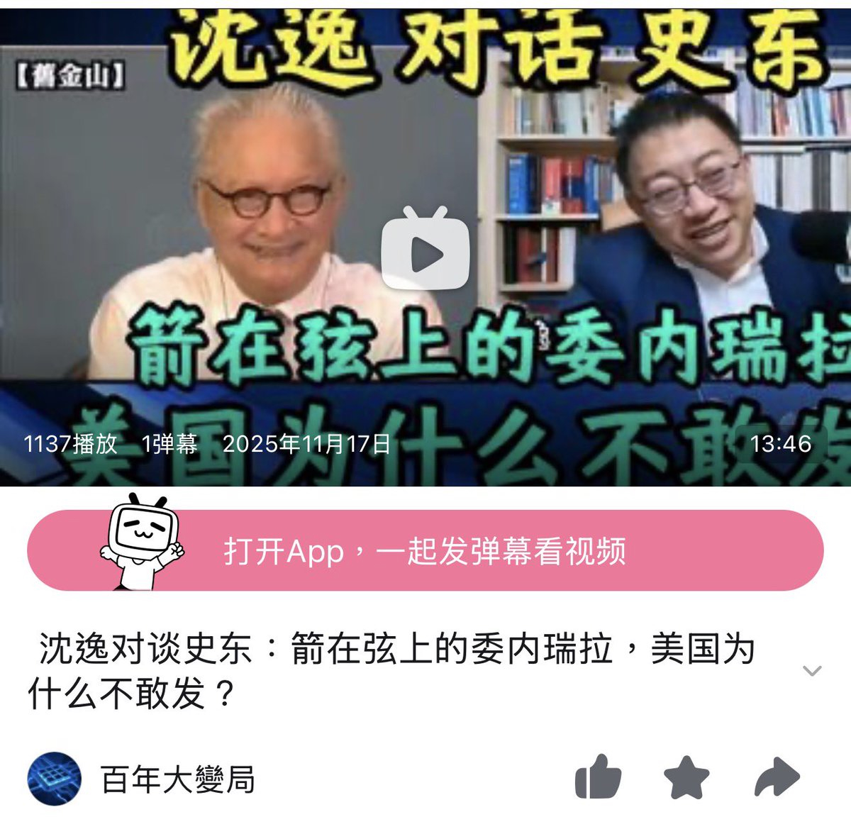 沈逸剛論述「美國為什麼不敢打委內瑞拉?(視頻截圖)