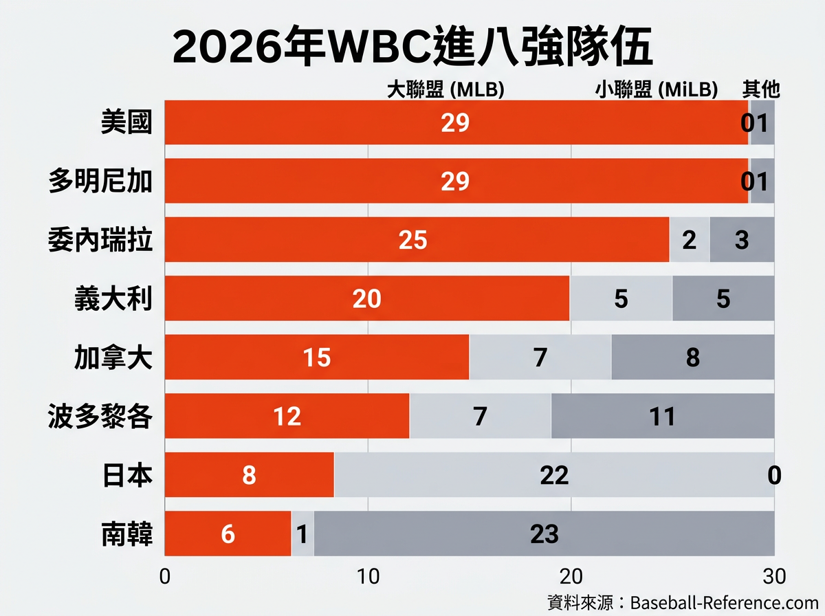 ,「進入前四強的球隊,根本就是MLB球員最多的前四名」、「平常看MLB沒感覺,全拉出