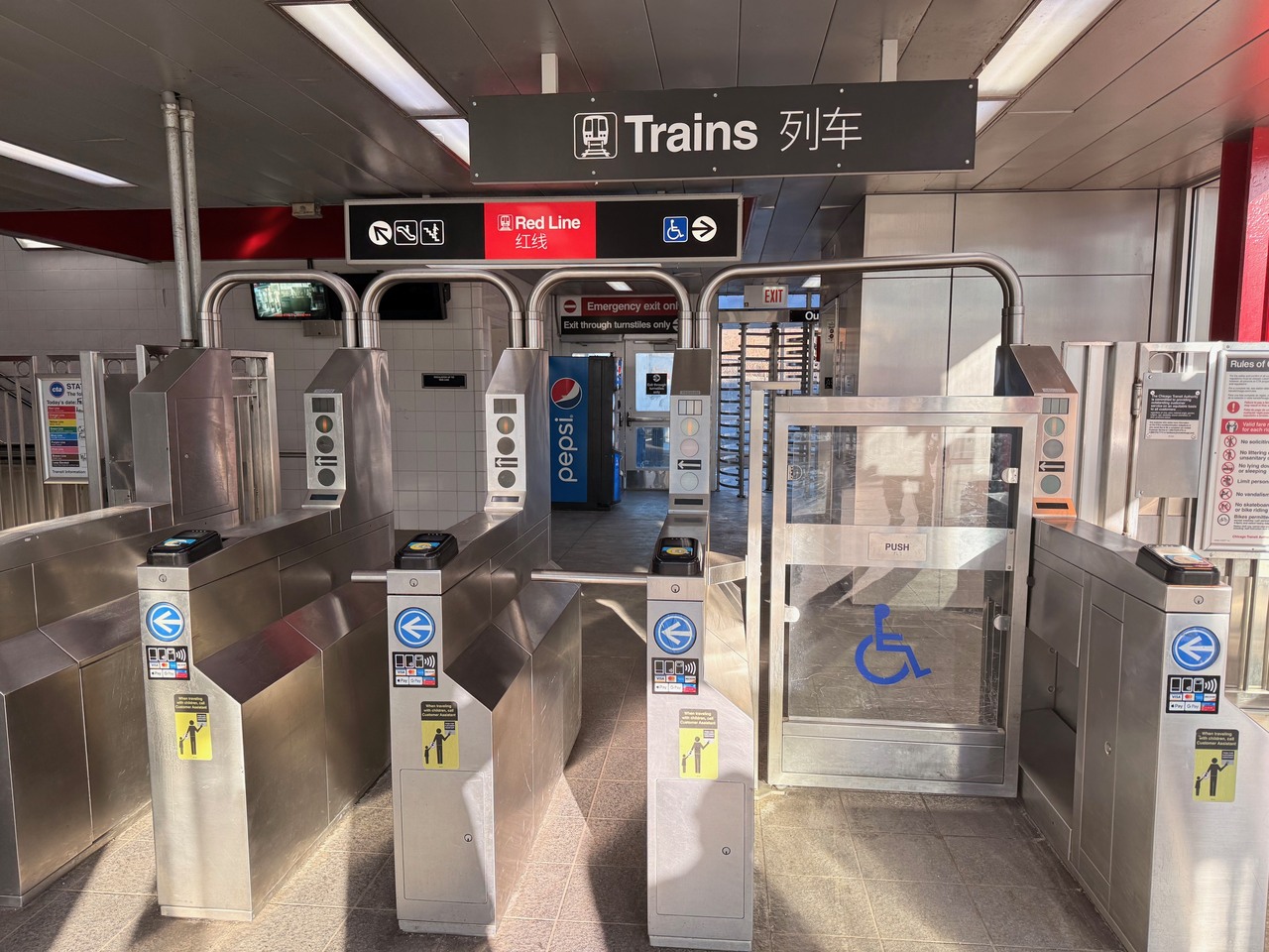 芝加哥交通局(CTA)日前於華埠舍麥路(Cermak-Chinatown)紅線捷運站舉行全新中文指示