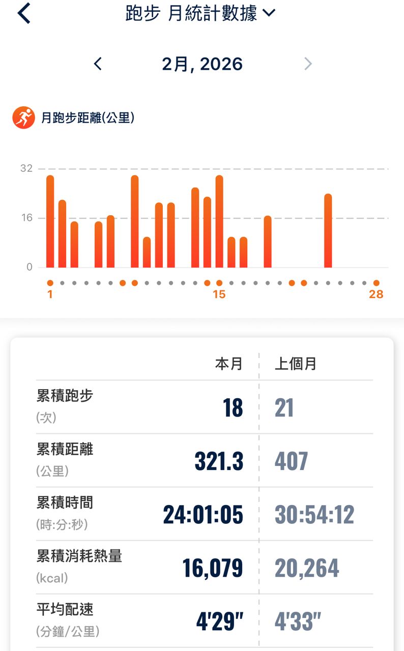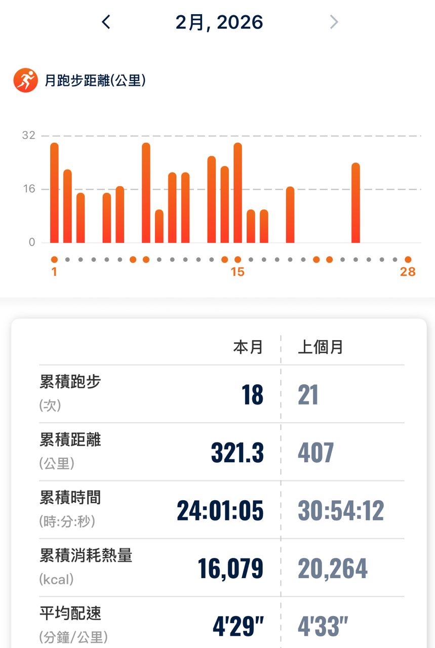 : 1/1全馬 2/28半馬,扣掉比賽,練習量都有300以上