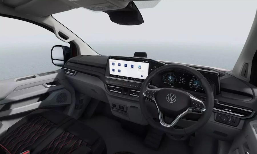 內裝方面,Transporter Sportline套件採用了環保皮革包覆的運動座椅,並以紅色縫線