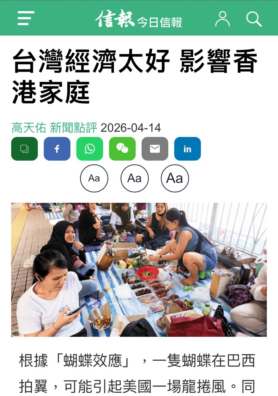 [新聞] 港媒直言「台灣經濟太好」影響到香港家庭!謝金河嚇一跳:還了台灣公道 - HatePolitics 板
