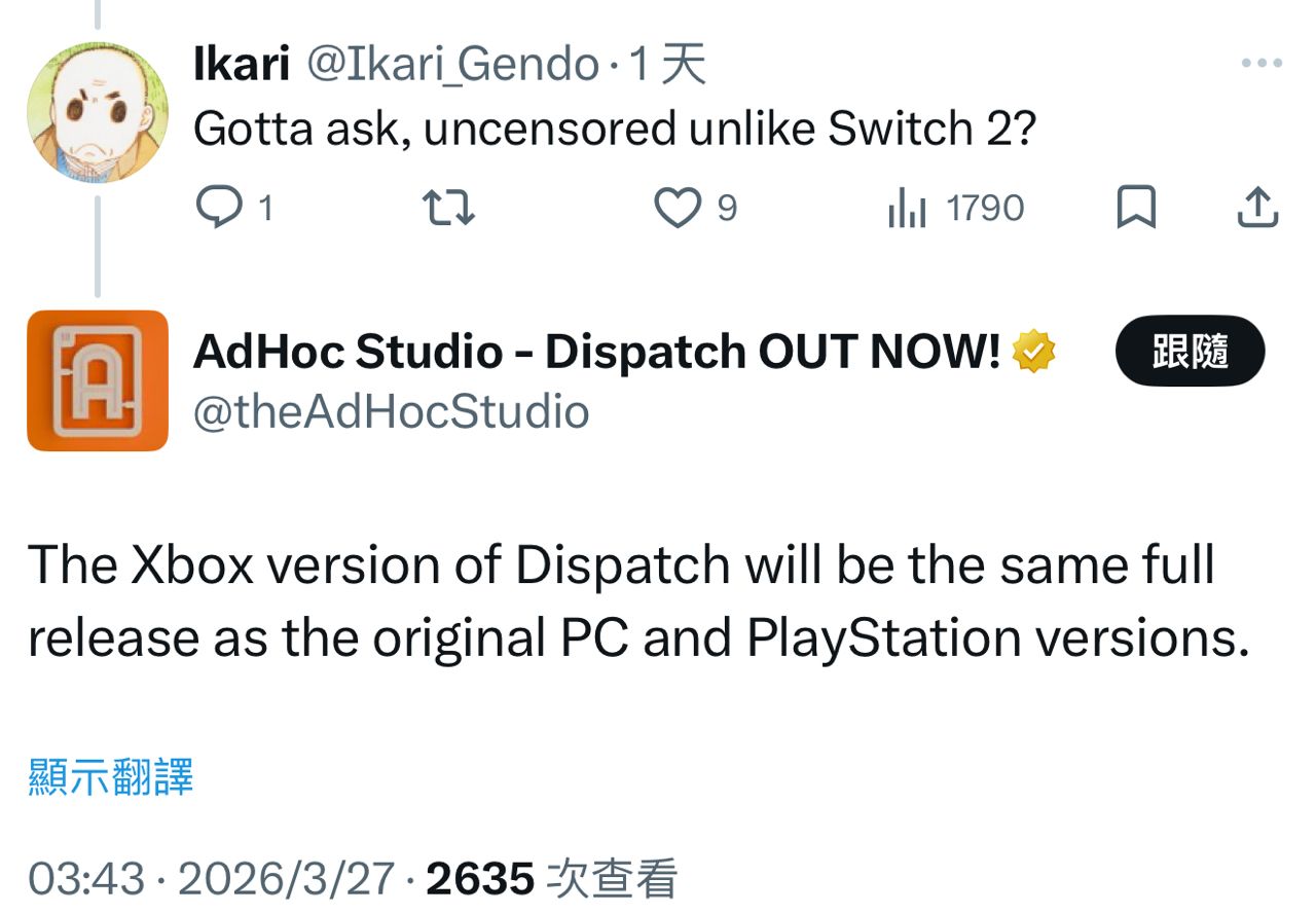 看樣子Dispatch的Xbox平台版本沒和諧