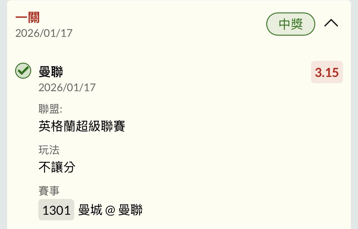 還好補了1.5大尻回賽前買的大球,沒輸沒