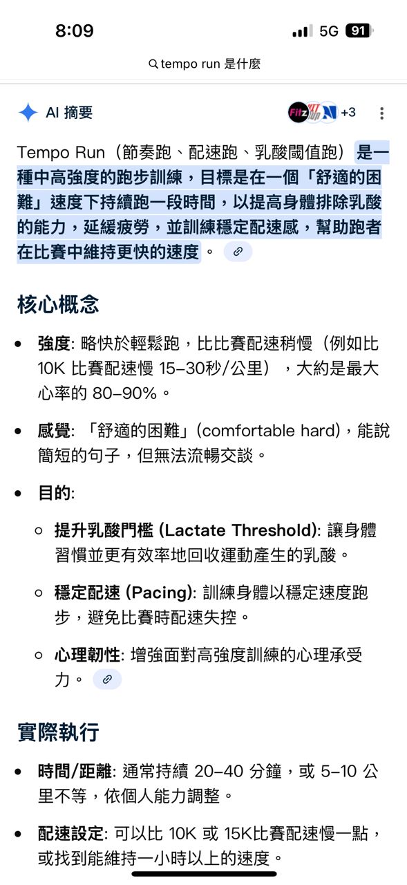 所以…tempo是比輕鬆跑快一點嗎